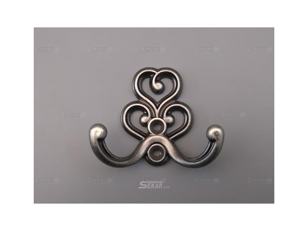 Nábytkový věšák ze slitiny kovů s povrchovou úpravou.
