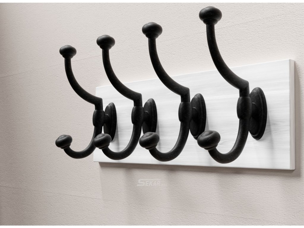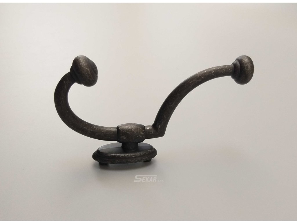 Nábytkový věšák ze slitiny kovů s povrchovou úpravou.