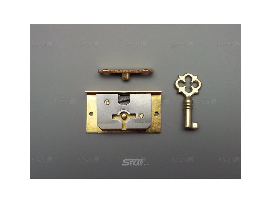 Nábytkový zámek s klíčem, do tohoto zámku nelze použít univerzální klíče, proto je klíč již součástí zámku. Zámeček je vhodný na šperkovnice a pouzdra na doutníky.