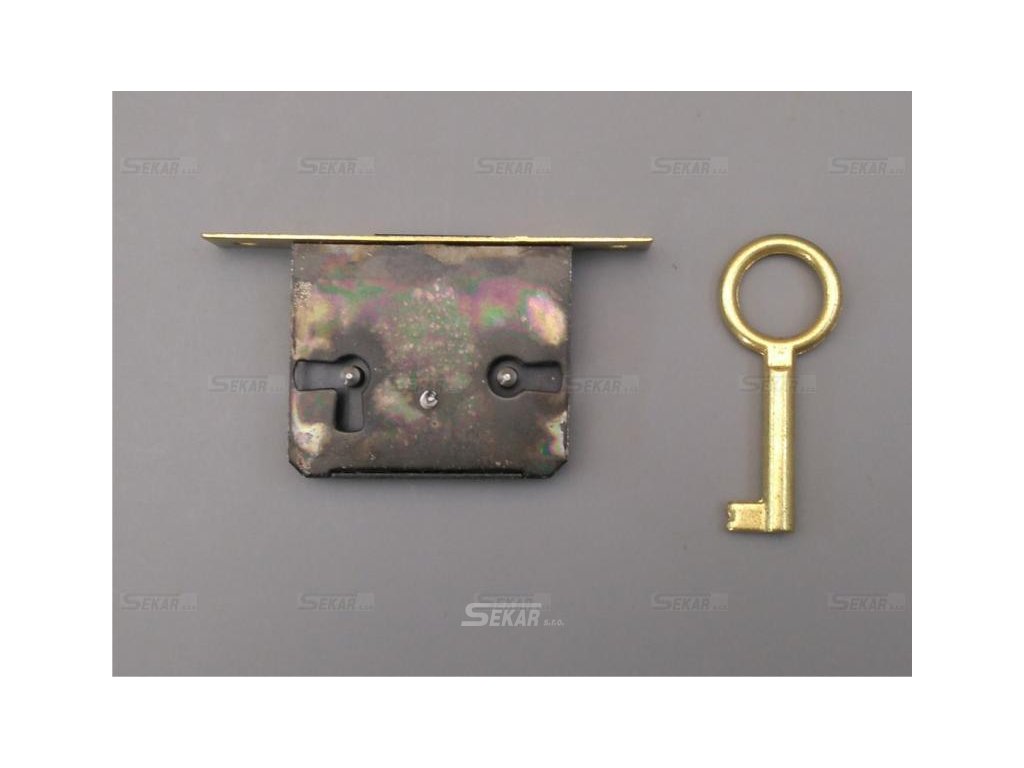 Zadlabávací zámek s mosazným klíčkem. Další varianty klíčků je možné vybrat v sekci nábytkových klíčů, nebo níže v souvisejících položkách.